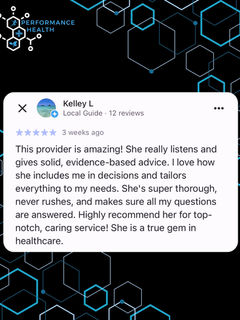 At Performance Health, our mission is to provide uncompromising, relationship-driven healthcare that values accuracy and relationships over volume. We believe in knowing each patient personally - their goals, challenges, preferences and story, so we can deliver the kind of care that only comes from true insight and trust. Our business model is intentionally small and focused, allowing us to offer the time, access, and attention that modern medicine often neglects. Through a blend of functional and conventional medicine, advanced diagnostics, and genuine human connection, we aim to restore what healthcare should be: personal, transparent, and relentlessly dedicated to your well-being.